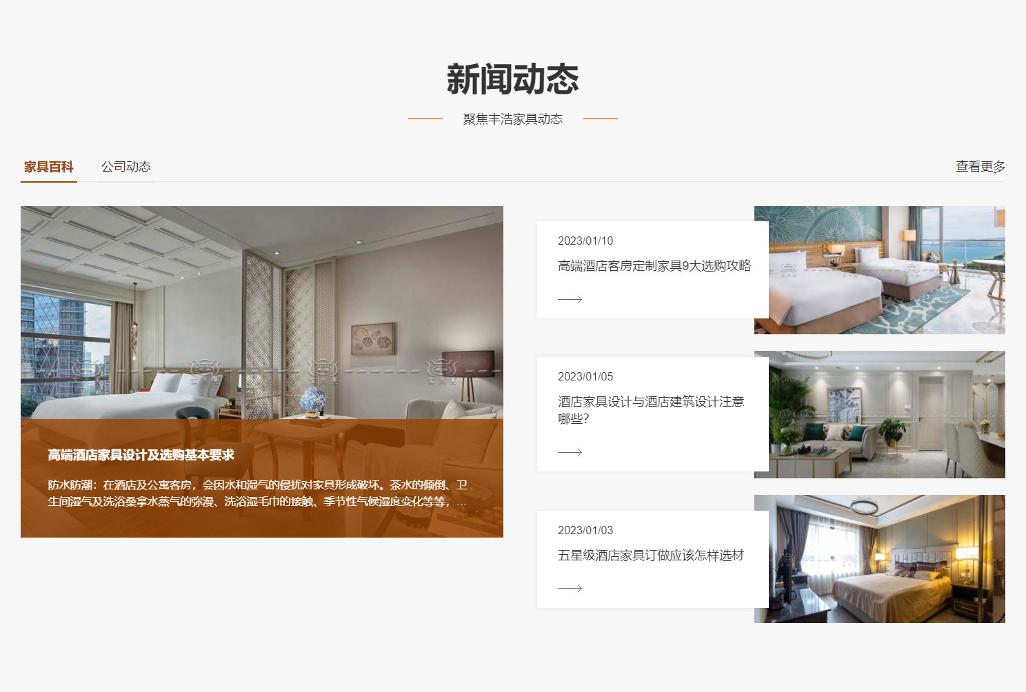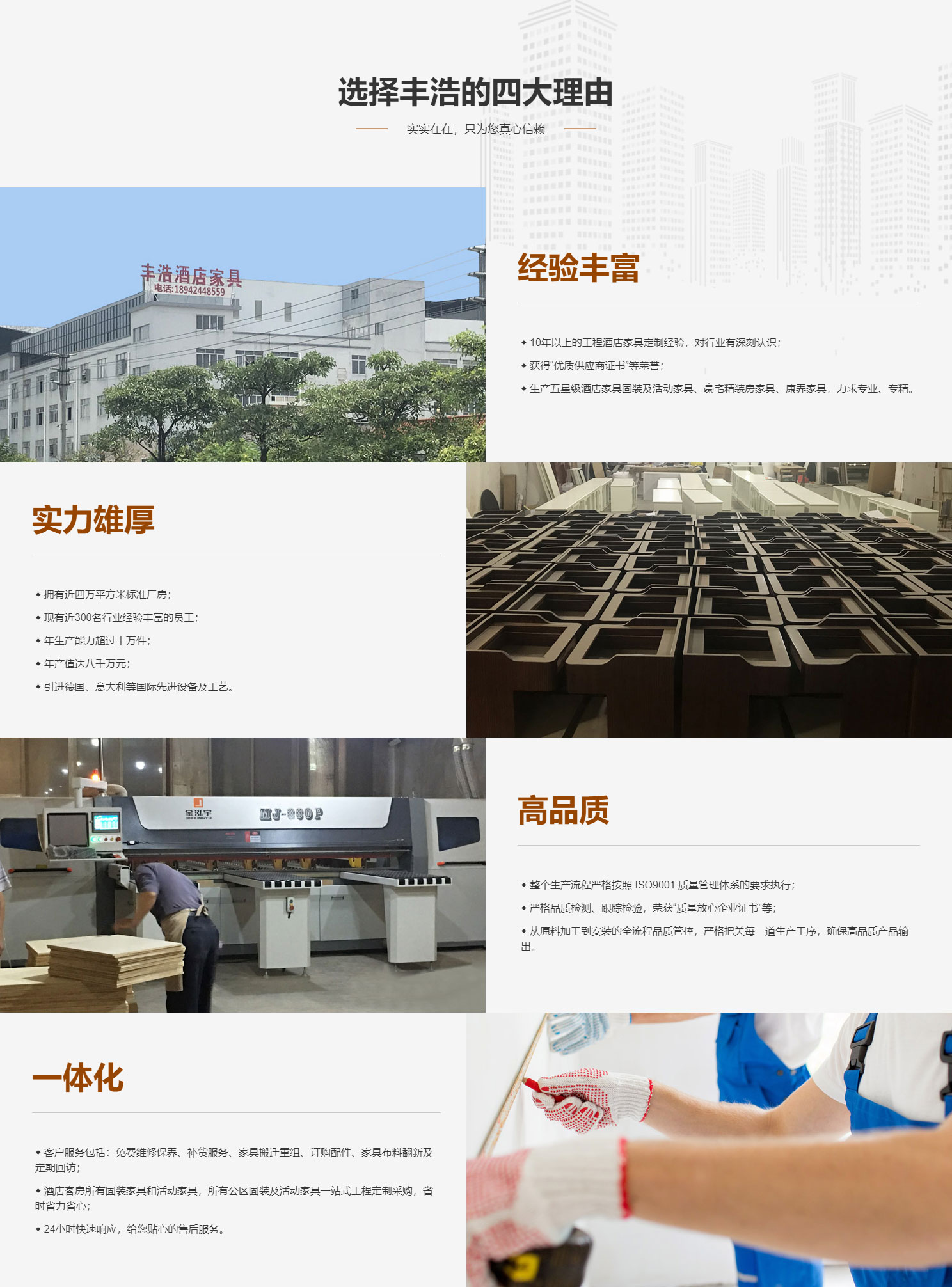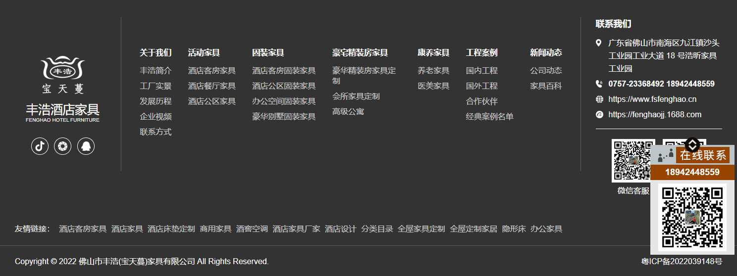 佛山市丰浩(宝天蔓)家具有限公司成立于2007年9月,坐落于素有“家具之都”称号的广东省佛山市,是一家专业设计 、生产、安装星级酒店、豪宅精装房、康养家具的现代化企业。