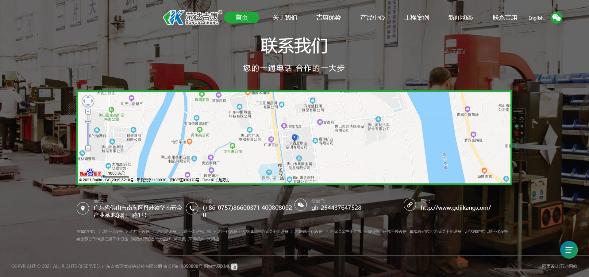 广东吉康环境系统科技有限公司成立于 2018 年,位于享有“功夫之乡”美誉的广东省佛山市。公司由拥有近30年暖通制冷行业经验的广东西屋康达空调有限公司(中外合资)引进美国先进技术,联合企业高管团队及环保专家共同出资组建,是一家集研发、生产、 销售、售后服务为一体的技术驱动型服务企业。立志聚焦污泥处理行业,将污泥变废为宝、美化人居环境,致力于打造污泥减量领域知名品牌。